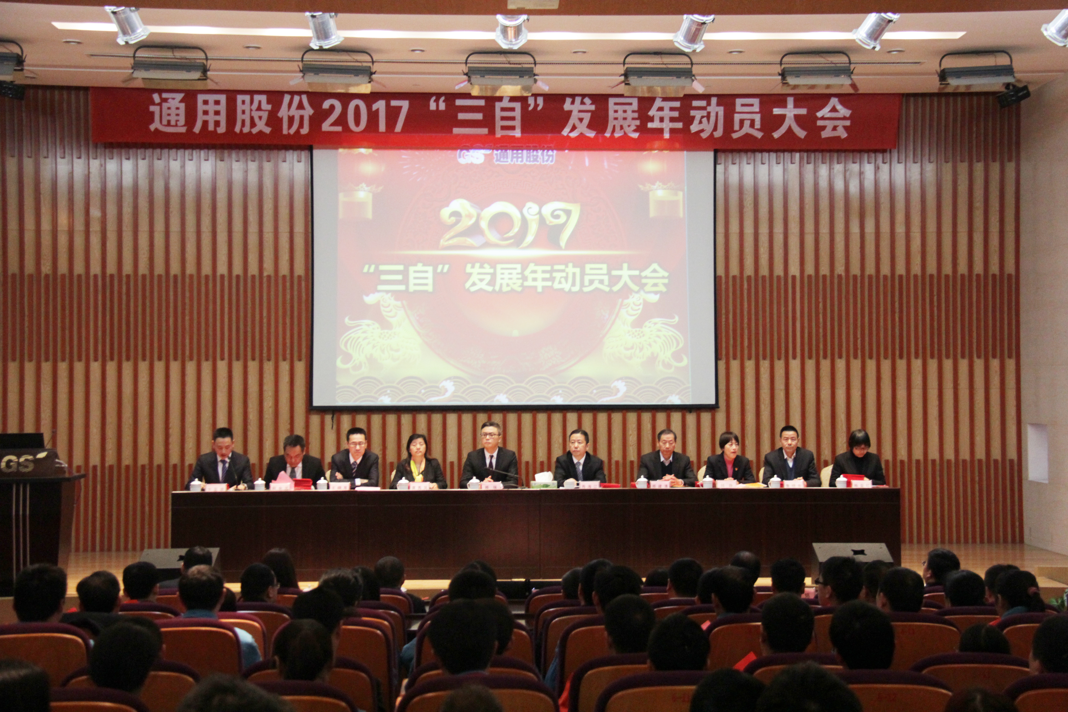 2月4日,農歷正月初八,通用股份召開2017年新春動員大會,紅豆集團董事局主席周海江、通用股份董事長顧萃、總經理王曉軍等領導出席會