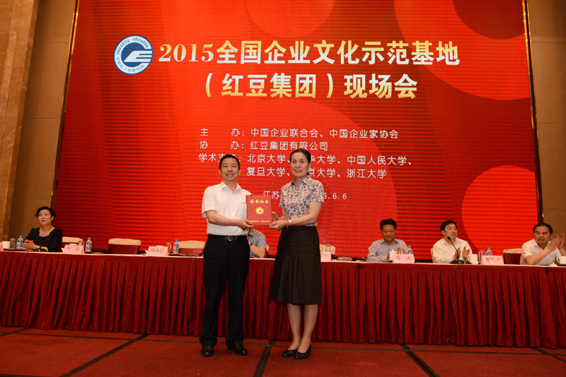 6月6日,在無錫市紅豆杉莊舉辦的2015全國企業(yè)文化示范基地(紅豆集團)現(xiàn)場會上,紅豆集團被中國企業(yè)聯(lián)合會、中國企業(yè)家協(xié)會授予“全國企業(yè)