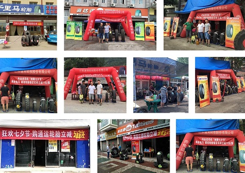 今年通用股份第四季七夕愛購月活動更是加大力度,從8月1日至8月28日,為期28天,約惠老司機、相聚828, 優惠普及風暴,席卷全國!凡購買通用股份“千里馬、赤兔馬、騏馬、通運、喜達通”五大品牌指定8款輪胎產品,立減77元,不忘初心,踐行以客戶為中心的承諾,各地經銷商們也因地制宜,貼心地為司機們準備了各種驚喜,路演所到之處,不僅匯聚了大規模的人流,還得到了老司機們的一致點贊。