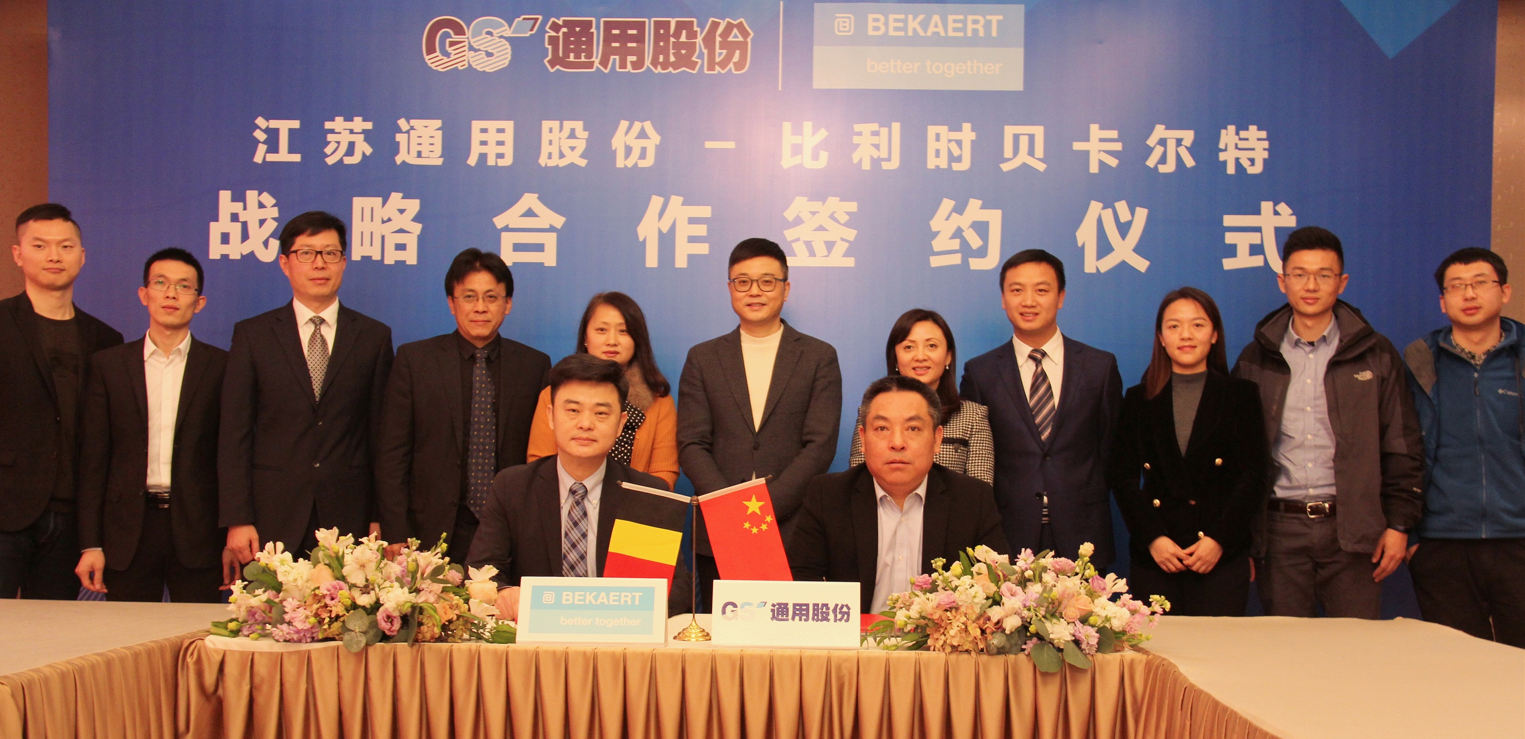 1月21日,通用股份與比利時貝卡爾特鋼簾線簽署深化戰略合作協議。通用股份董事長顧萃、常務副總經理程金元,貝卡爾特北亞區商務總經理王穗生等領導共同見證此次簽約。