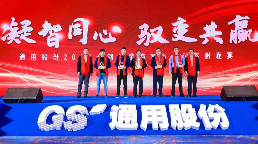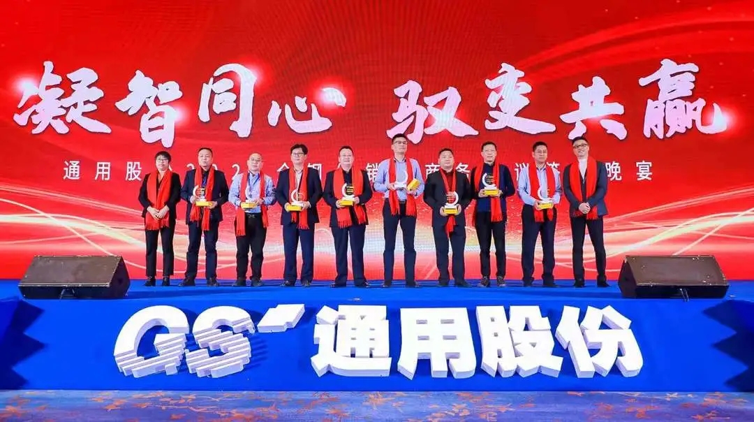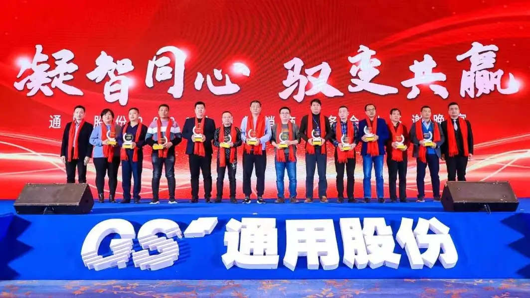 唯創新者強,唯進化者勝。本次會議隆重表彰了為通用股份發展貢獻力量的經銷商合作伙伴,晚宴現場頒發了2020年度潛力經銷商獎、先進經銷商獎、優秀經銷商獎、杰出經銷商獎等獎項。他們以高昂的斗志馳騁跨越,在商海的競爭中勇立潮頭,乘風破浪,他們是通用股份親密無間的合作伙伴,一座座獎杯記錄了他們的榮譽和付出,會議現場氣氛不斷推向高潮!