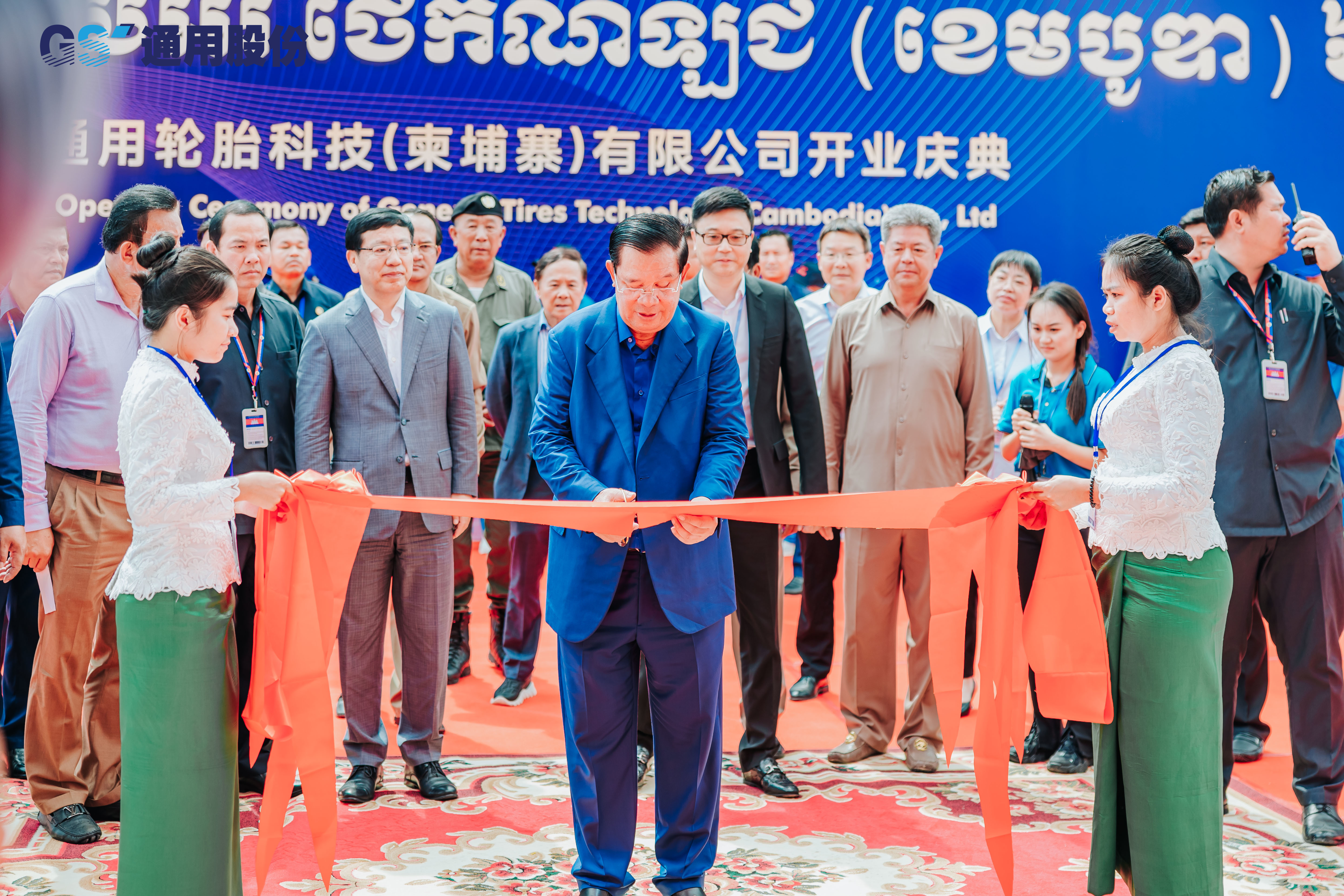 2023年5月22日,“奮進(jìn)新高地 啟航新征程”——通用輪胎科技(柬埔寨)有限公司開業(yè)慶典在柬埔寨西港經(jīng)濟(jì)特區(qū)隆重舉行。柬埔寨首相洪森親臨現(xiàn)場,中國駐柬埔寨大使王文天、中國駐柬埔寨大使館參贊鄔國權(quán)等中柬兩國政府領(lǐng)導(dǎo)及通用股份董事長顧萃、柬埔寨基地全體員工共同參加了活動,見證通用股份國際化戰(zhàn)略布局中的又一重要里程碑。