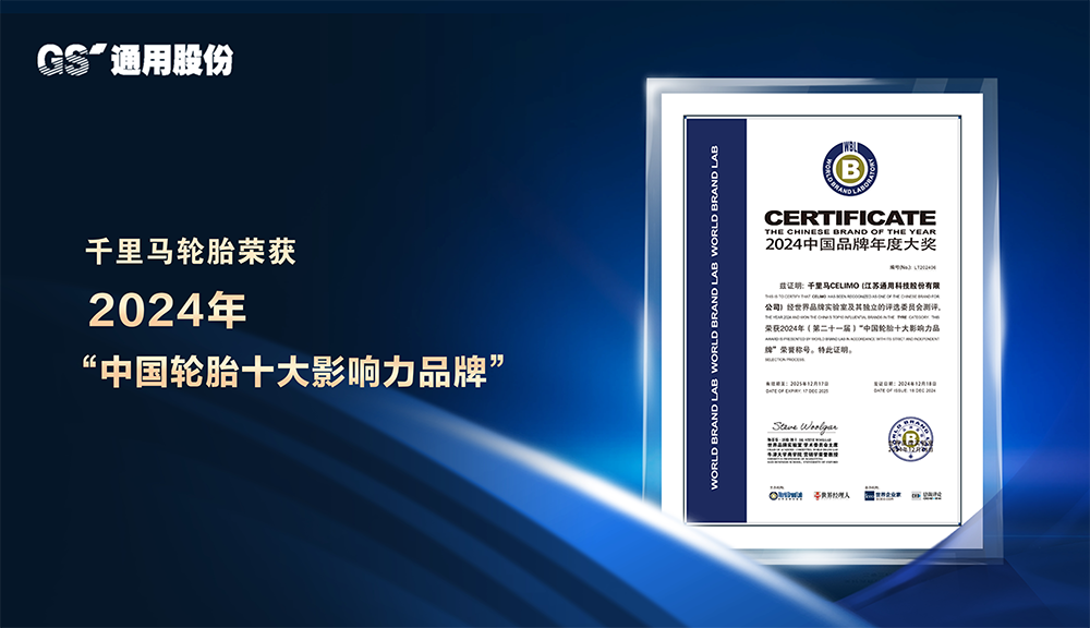 12月18日,通用股份旗下千里馬輪胎連續(xù)六年榮獲“中國輪胎十大影響力品牌”稱號(hào)。這項(xiàng)殊榮來自2024年第二十一屆“中國品牌年度大獎(jiǎng)”評(píng)選,該獎(jiǎng)項(xiàng)由世界品牌實(shí)驗(yàn)室頒發(fā),旨在表彰在中國市場(chǎng)具有突出影響力的品牌。