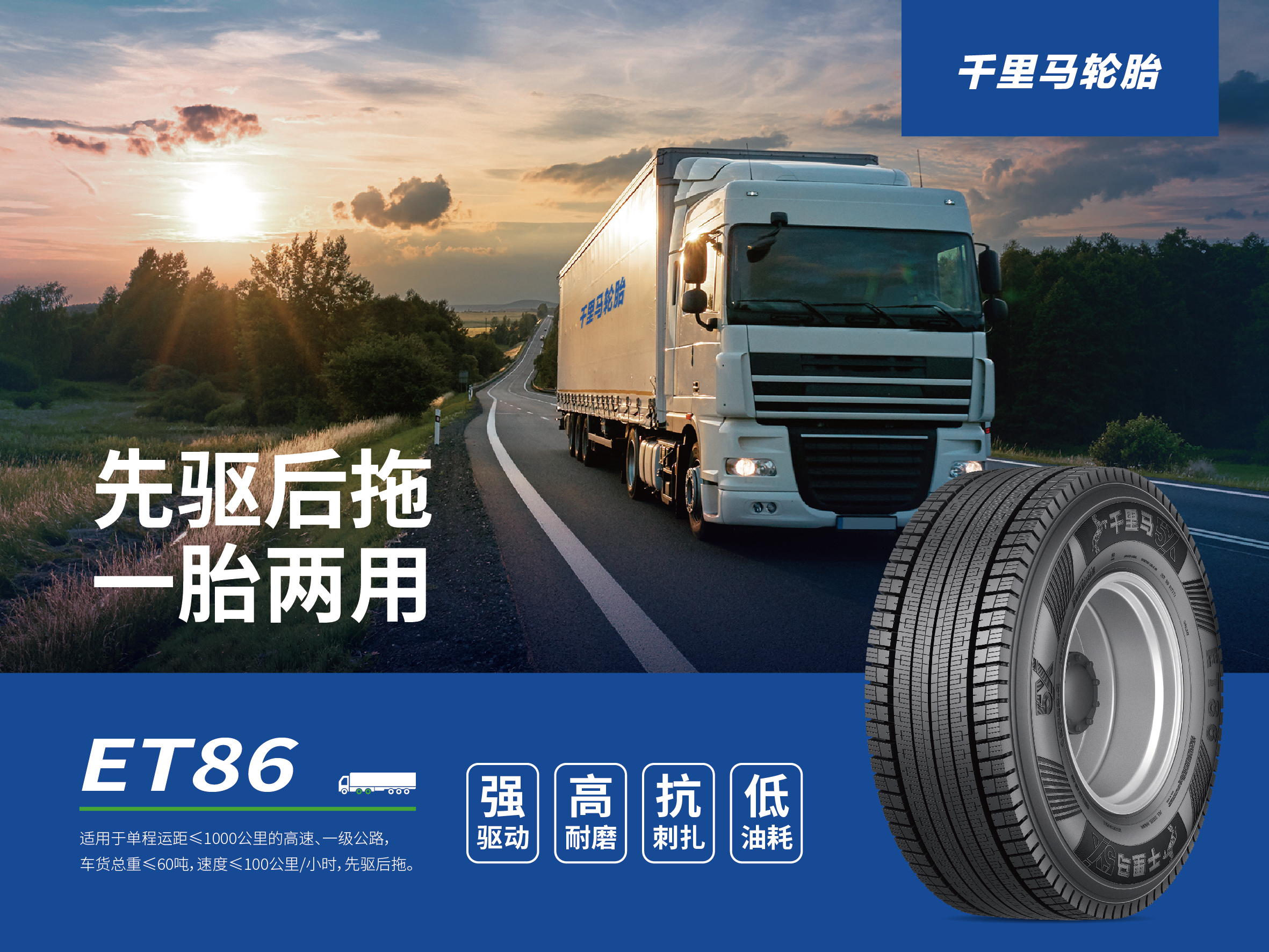 近年來,隨著新能源商用車市場的快速發(fā)展和輪胎需求的不斷升級,千里馬ET86應運而生。