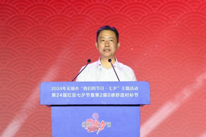 無錫市委宣傳部常務副部長蔡文煜在致辭中表示,過去二十多年里,紅豆集團始終堅持以傳統(tǒng)文化為寄托,以七夕節(jié)為契機,通過詩歌朗誦會、七夕節(jié)民俗論壇、尋找當代“王維”、感動中國的愛情故事征集等多種形式的活動,將弘揚中國傳統(tǒng)文化落到實處。紅豆集團連續(xù)24年舉辦的“紅豆七夕節(jié)”,不僅是紅豆企業(yè)品牌建設,充分挖掘七夕文化內(nèi)涵的具體行動,更是紅豆學習貫徹落實習近平文化思想,持續(xù)推進中國傳統(tǒng)節(jié)日振興,推動中華優(yōu)秀傳統(tǒng)文化傳承發(fā)展的具體實踐。