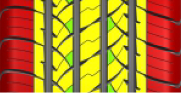 增加胎面的咬合邊,提高剎車和濕地安全 性能。切割花紋防止花紋塊在剎車時發生 卷邊效應,增大接地面積。