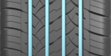 四條縱向溝槽及眾多細小溝槽相互組合, 提高排水效率,降低胎面浮水效應,雨天 讓胎面與濕滑路面更緊密的接觸。