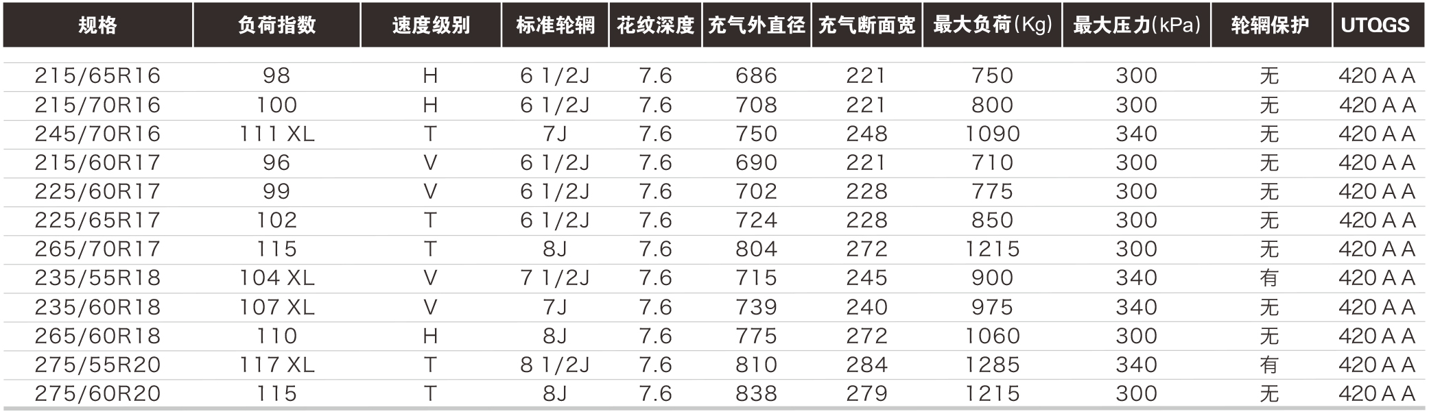 城市SUV 冬季SUV 冬季轎車胎 高性能輪胎 經濟型輪胎 輕卡輪胎 全路面SUV輪胎 四驅越野輪胎