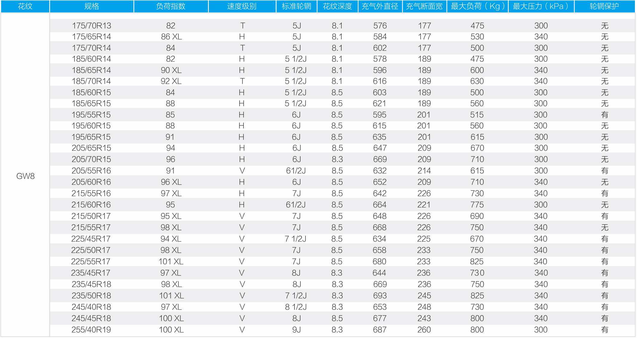 Gw8擁有鋸齒狀向溝槽有效地增強抓地力,不僅展示了輪胎的精致外觀,還提高了抓地能力。曲折的斜向刀口有效提高冰面和雪地的牽引力,保障彎道行駛時候的穩定性。