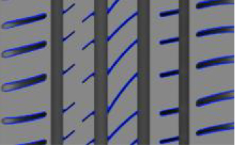 花紋造型邊緣的倒角設計,有效避免輪胎初期的異常磨損,提供更大的接地面積,提升輪胎的濕地的抓地力。增強了輪胎的濕地操控穩定性能。