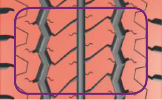·胎面接地面積較大。花紋塊之間具有加強筋設計。輪胎磨損更加均勻,使用壽命更長。